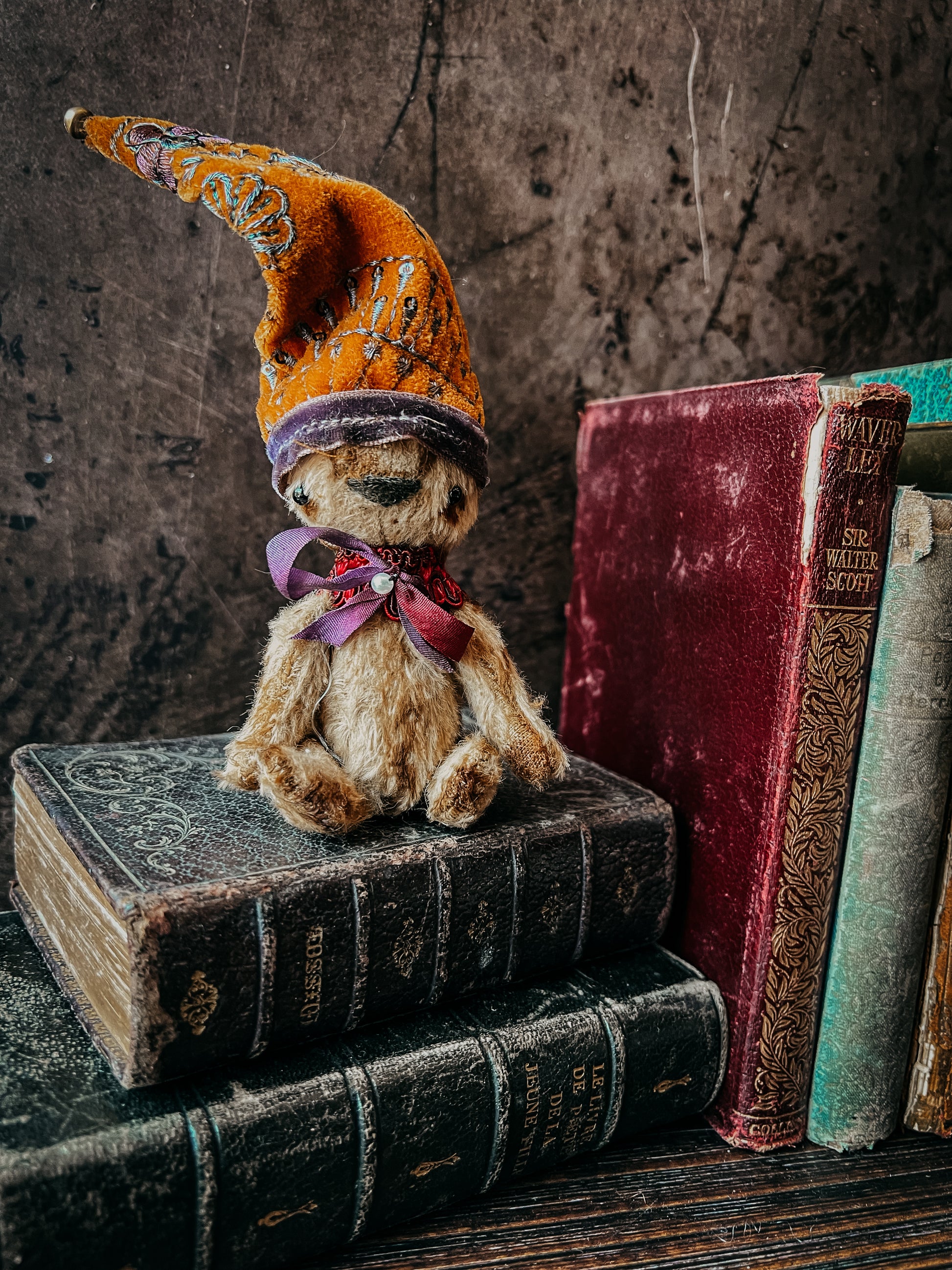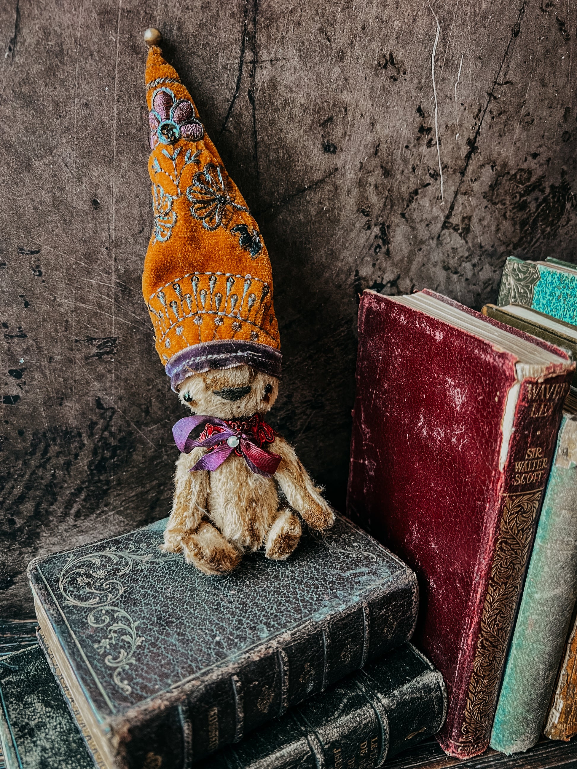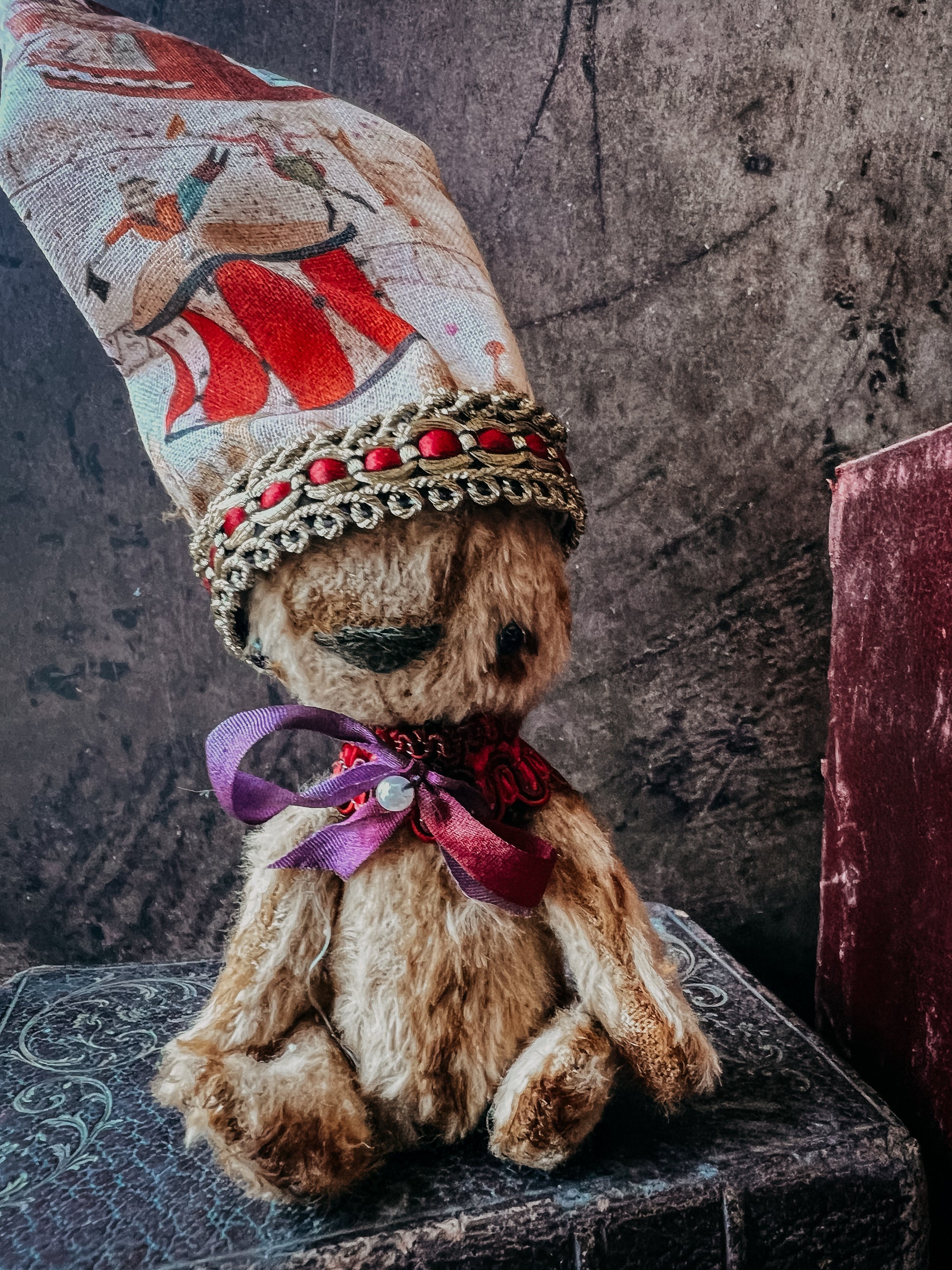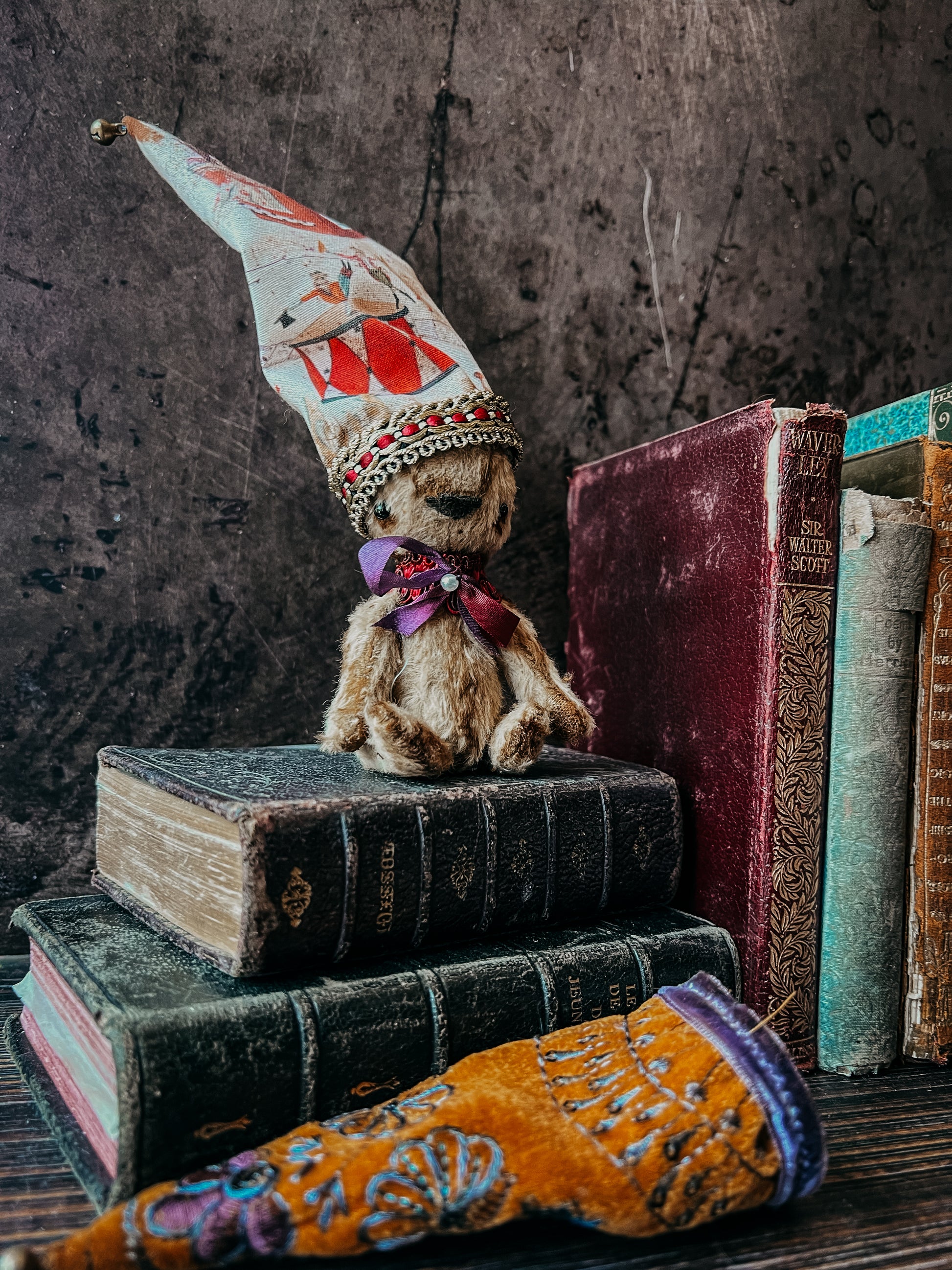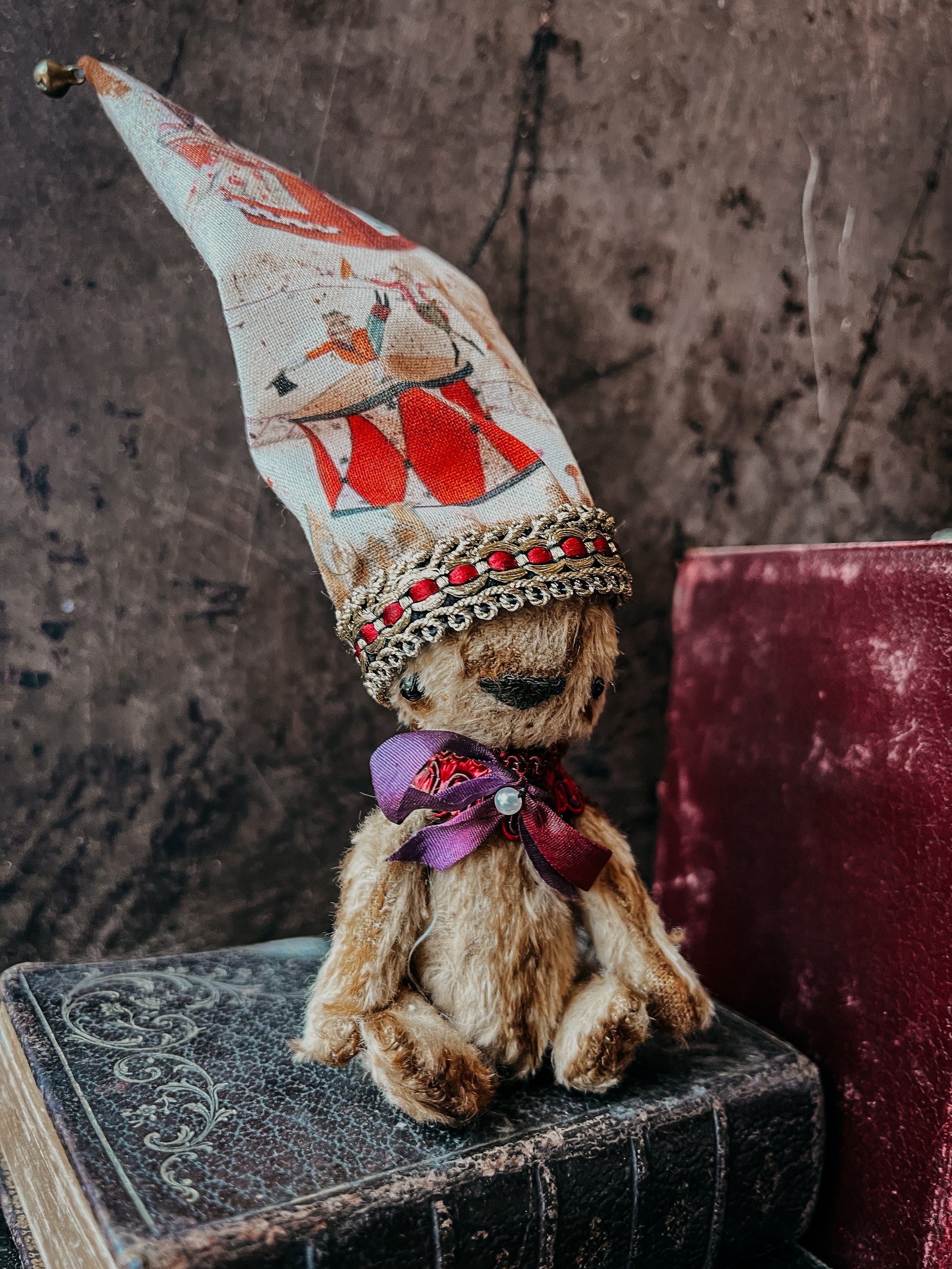 Sir Barnaby is a one of a kind completely handmade, weighted and jointed with a nice hand stitched collar and two beautiful hats that each have little bells on the end. Along with Sir Barnaby you will receive a certificate of adoption and a handmade matching passport with more about him inside.