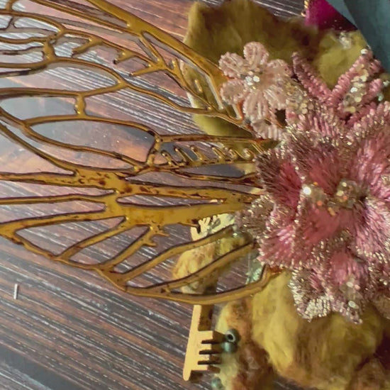 Fully jointed with glass eyes. Quality embroidery thread. Made from scratch. Top to bottom, she is about 15cm tall and wing to wing, approx 20cm wide.